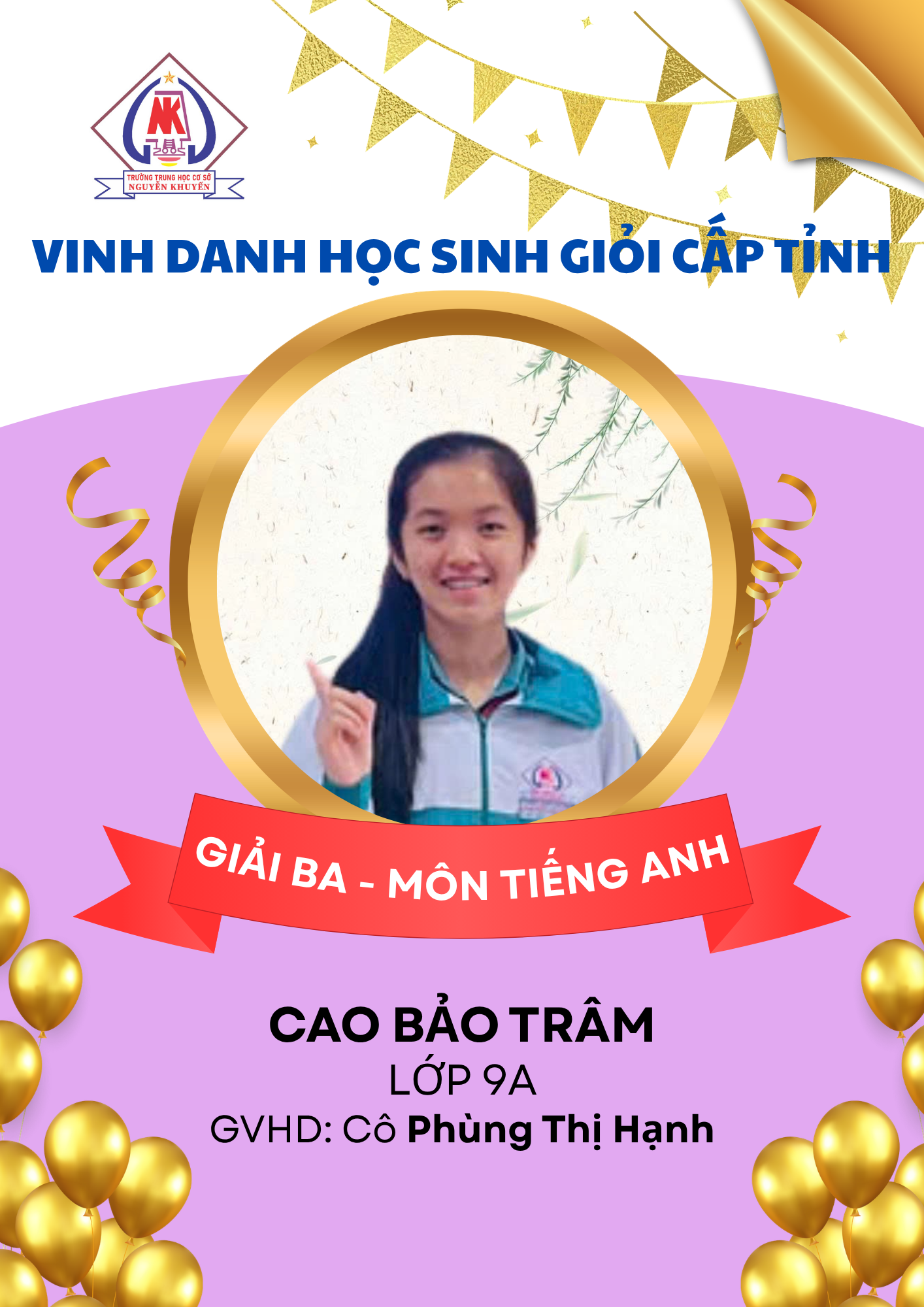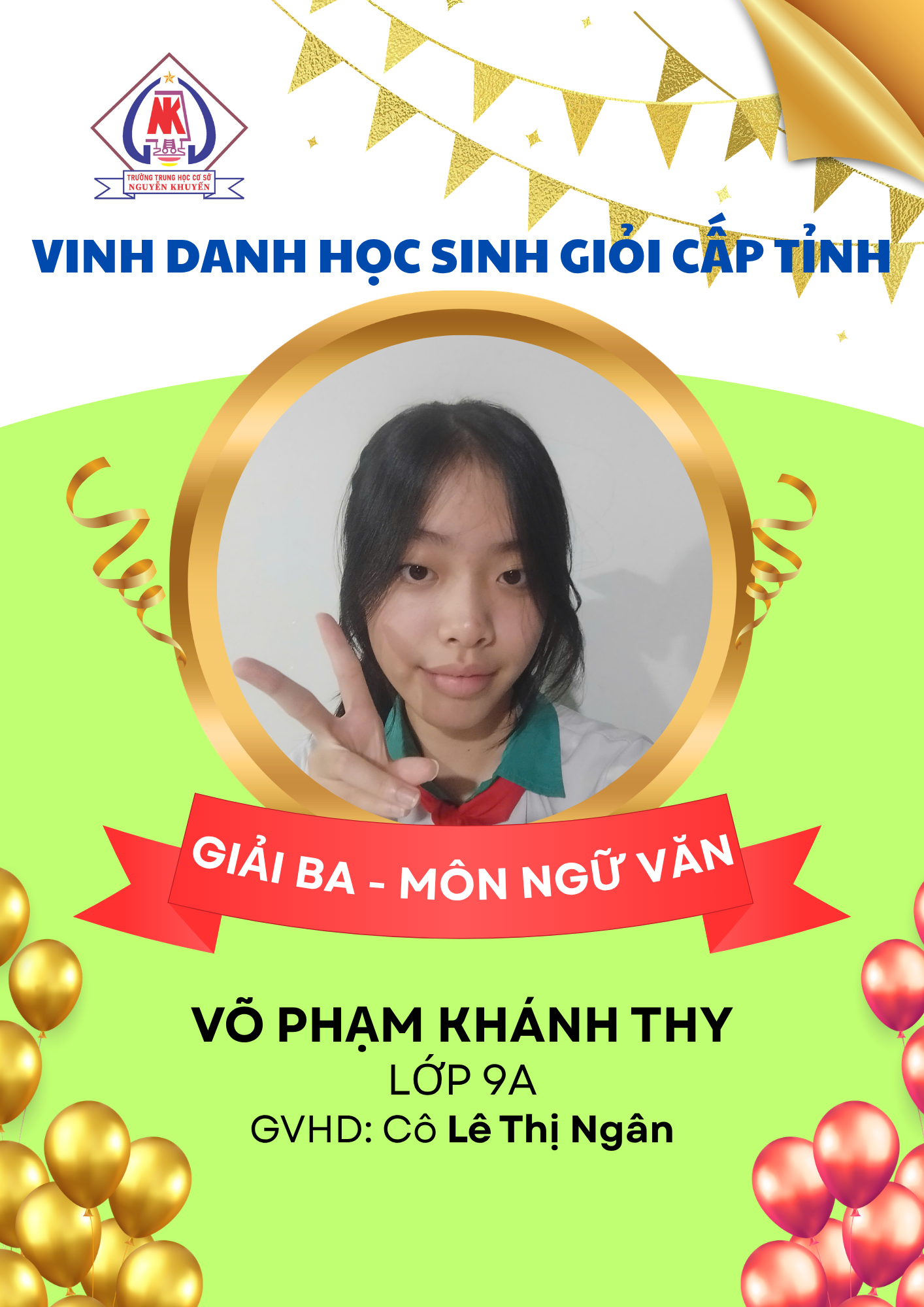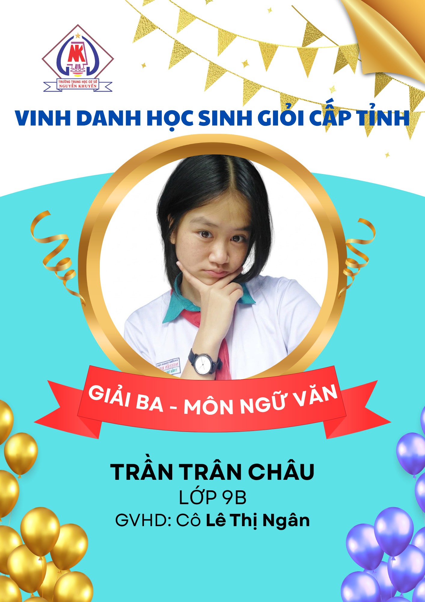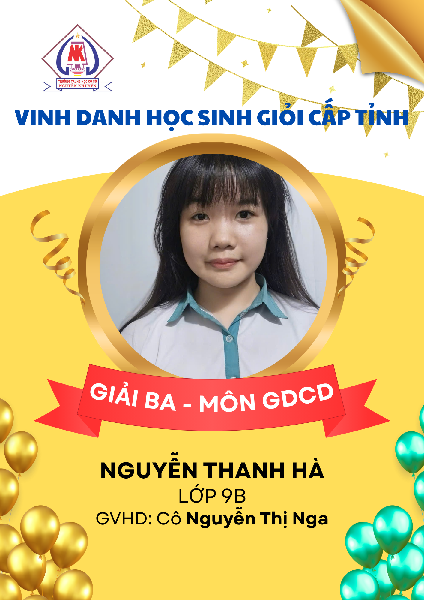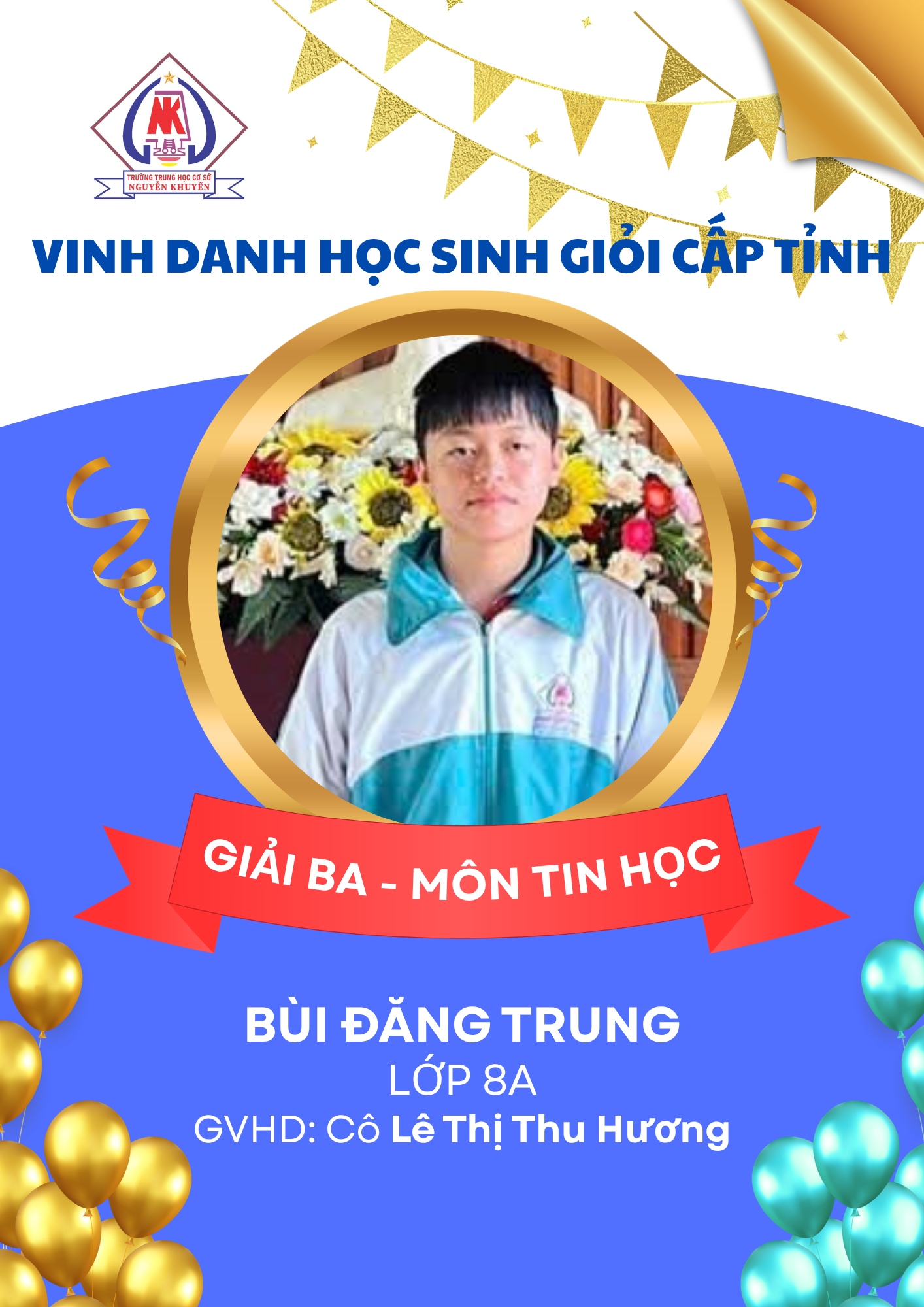 – 08 giải Ba: các môn Ngữ văn, GDCD, Toán, Tiếng Anh và Tin học