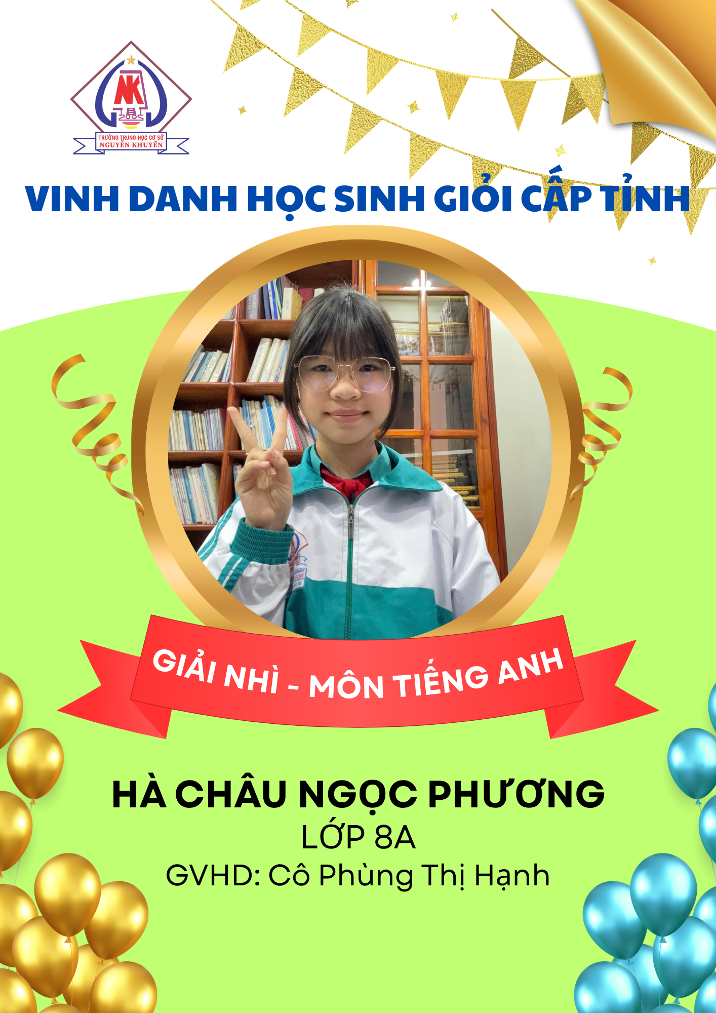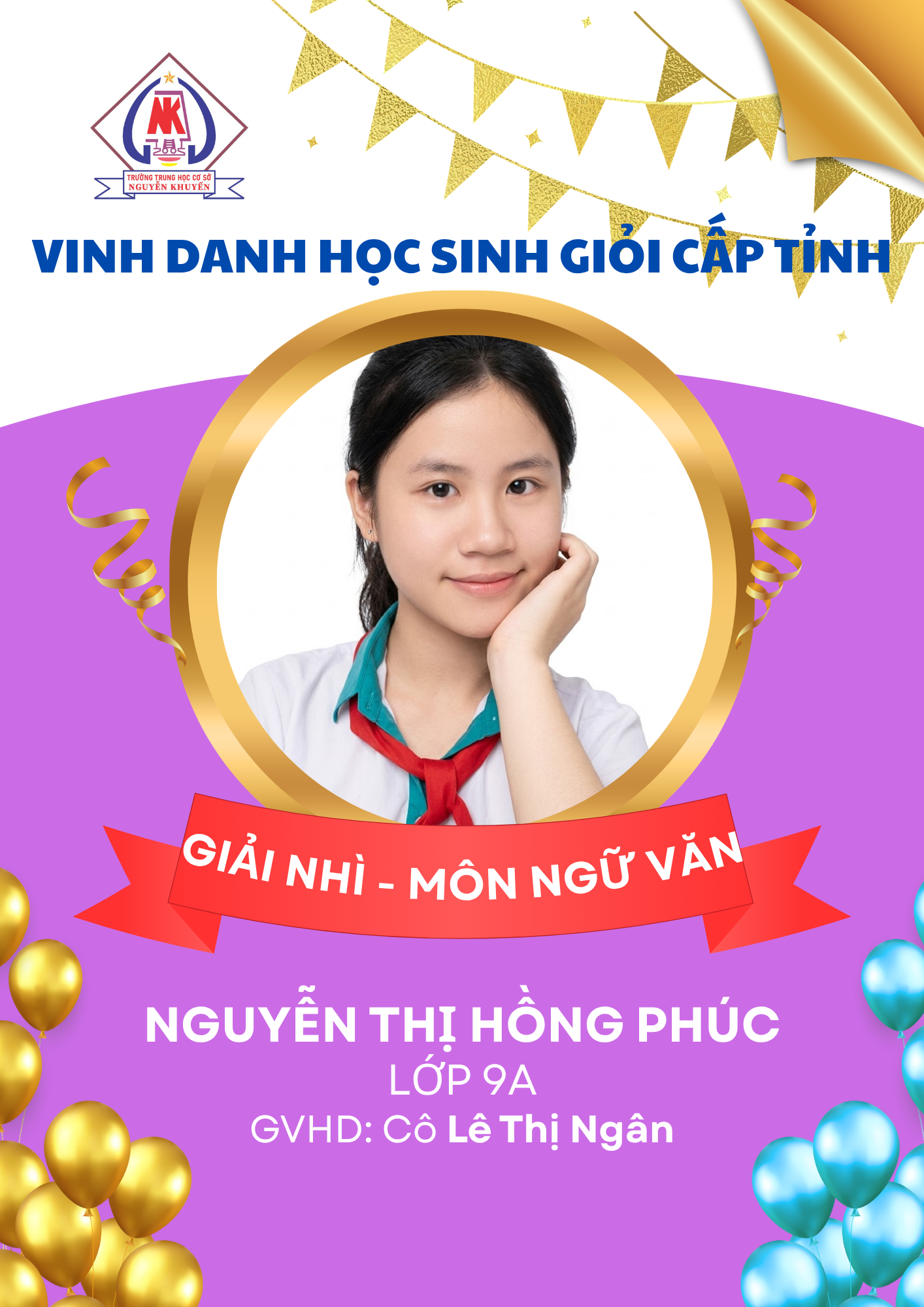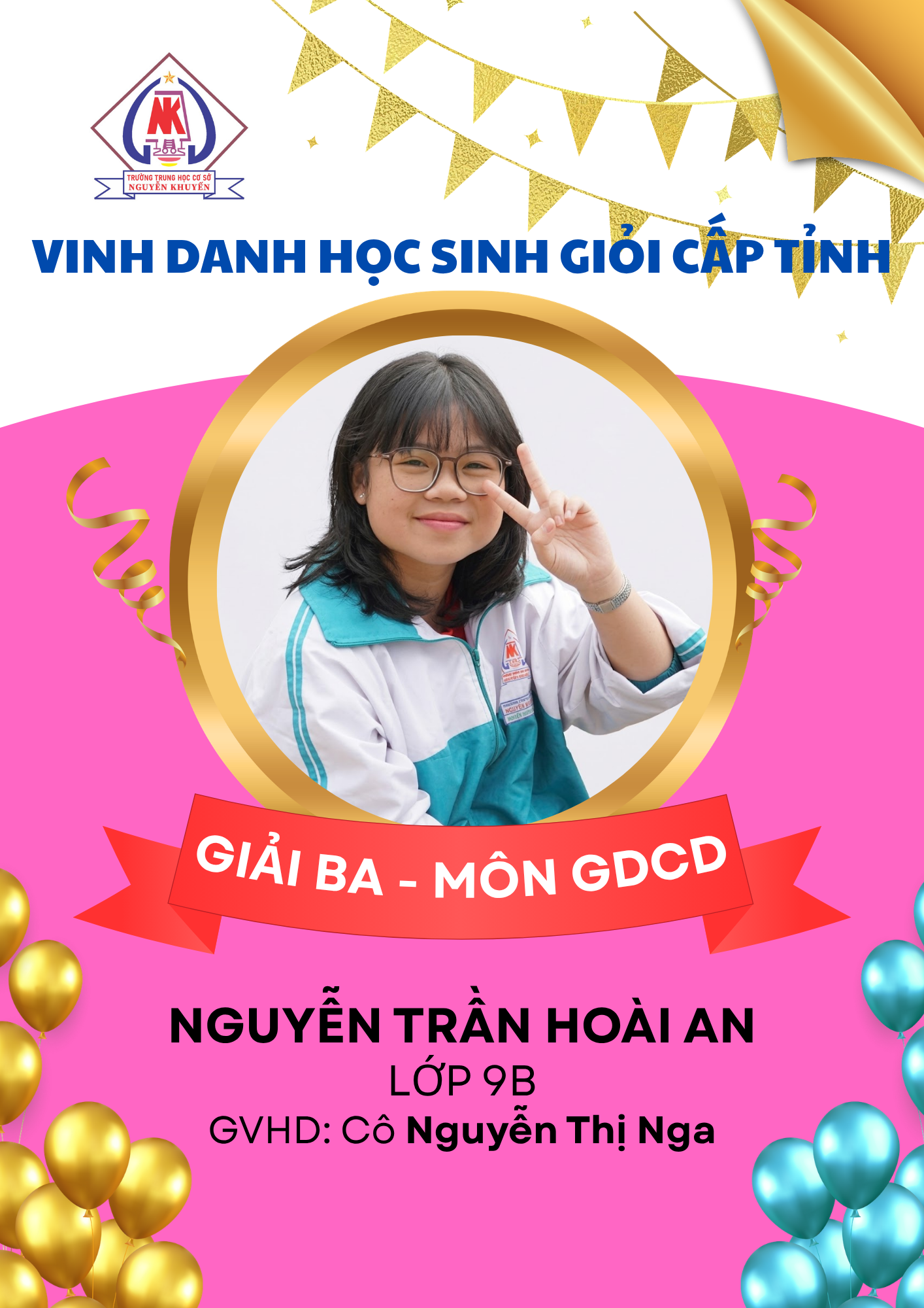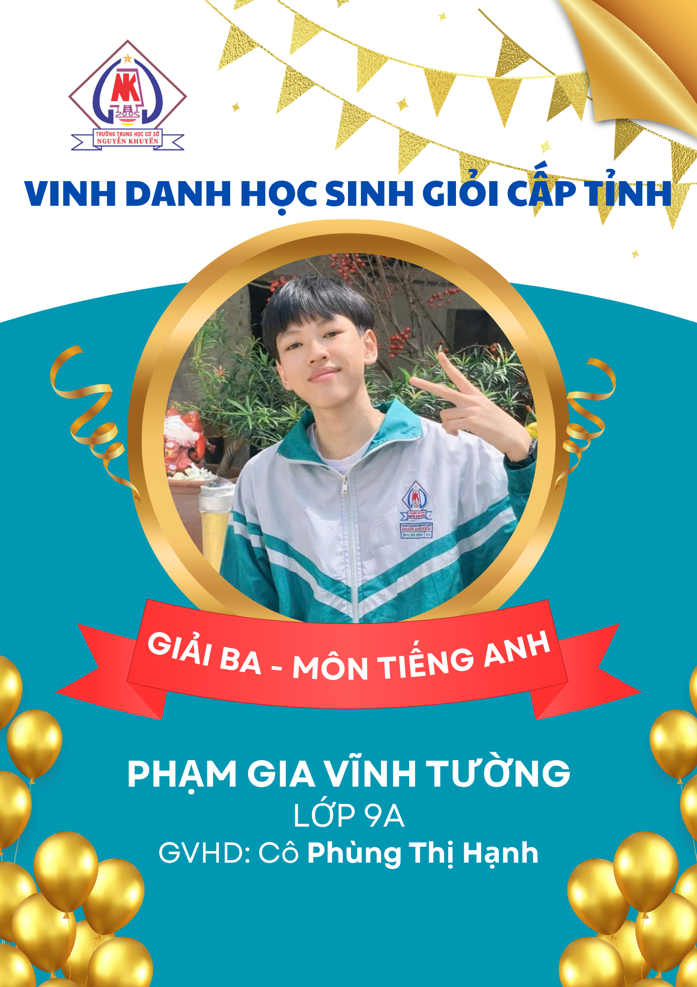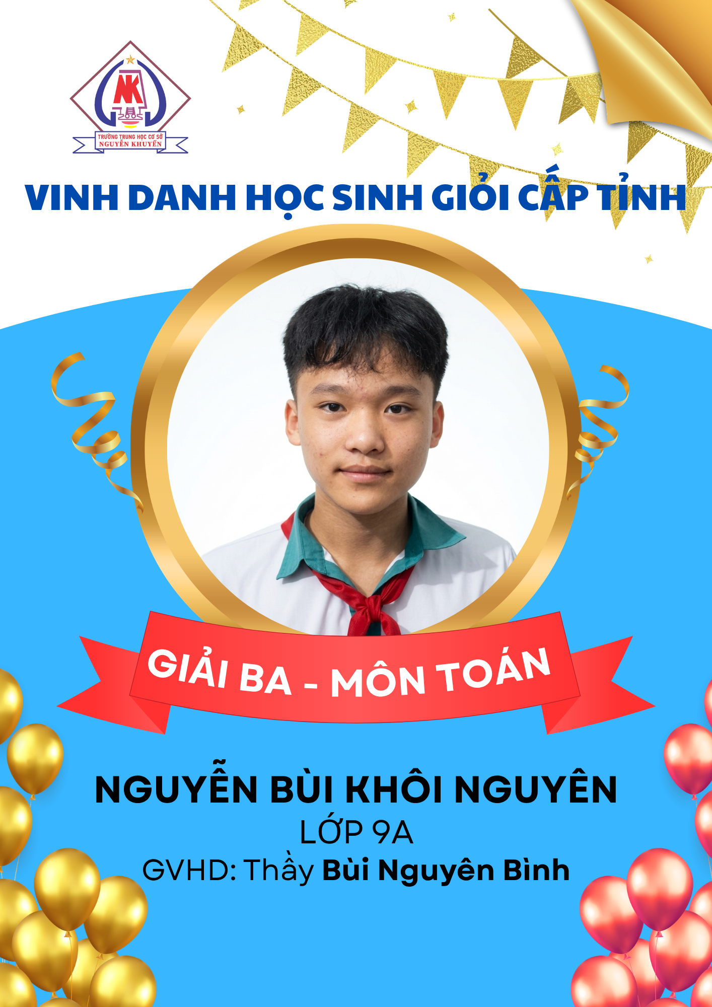 – 08 giải Ba: các môn Ngữ văn, GDCD, Toán, Tiếng Anh và Tin học