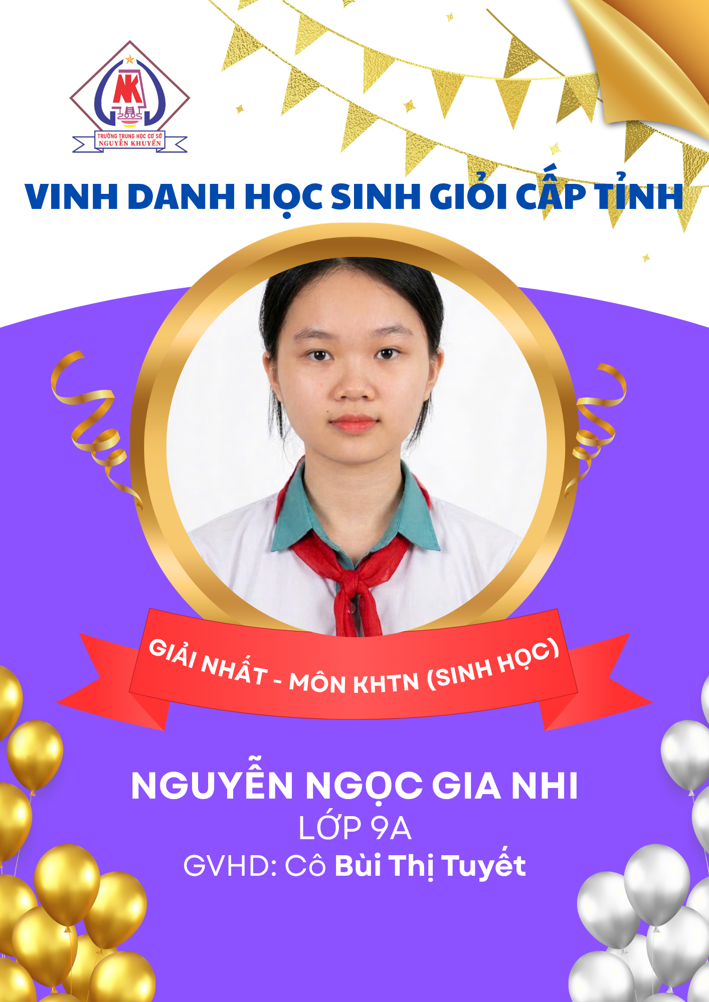 – 01 giải Nhất môn Sinh học