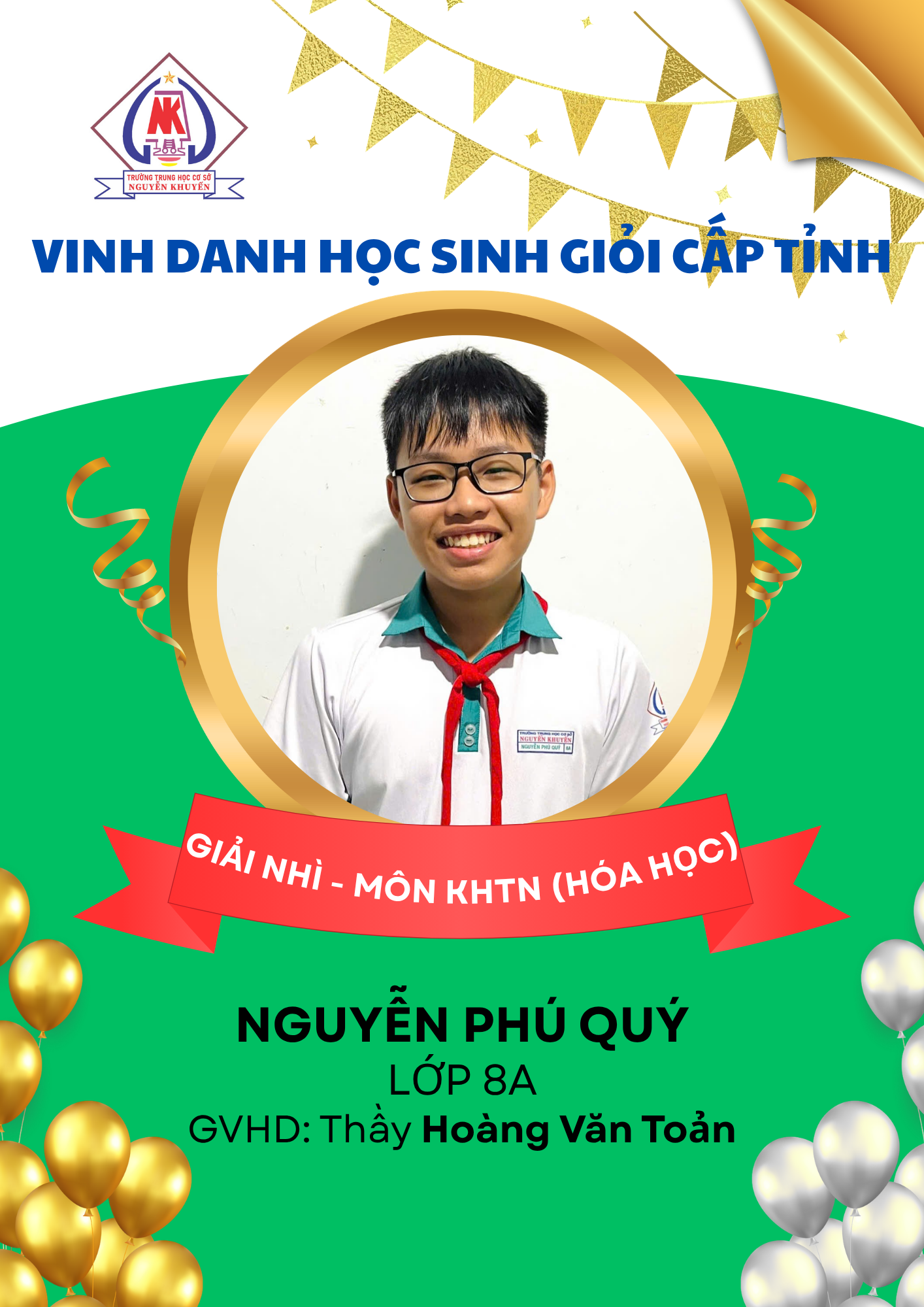 – 03 giải Nhì: môn Tiếng Anh, Ngữ văn và Hóa học